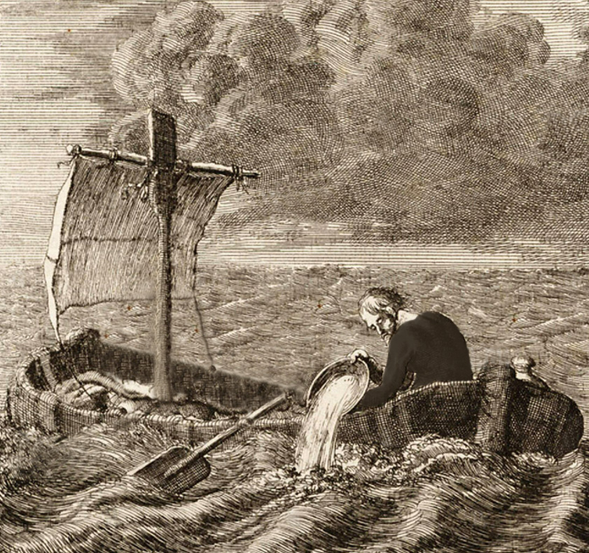 Ch 24 – Jan Luyken 1684, gravure hommandaise – évasion de cinq esclaves anglais a bord d un radeau